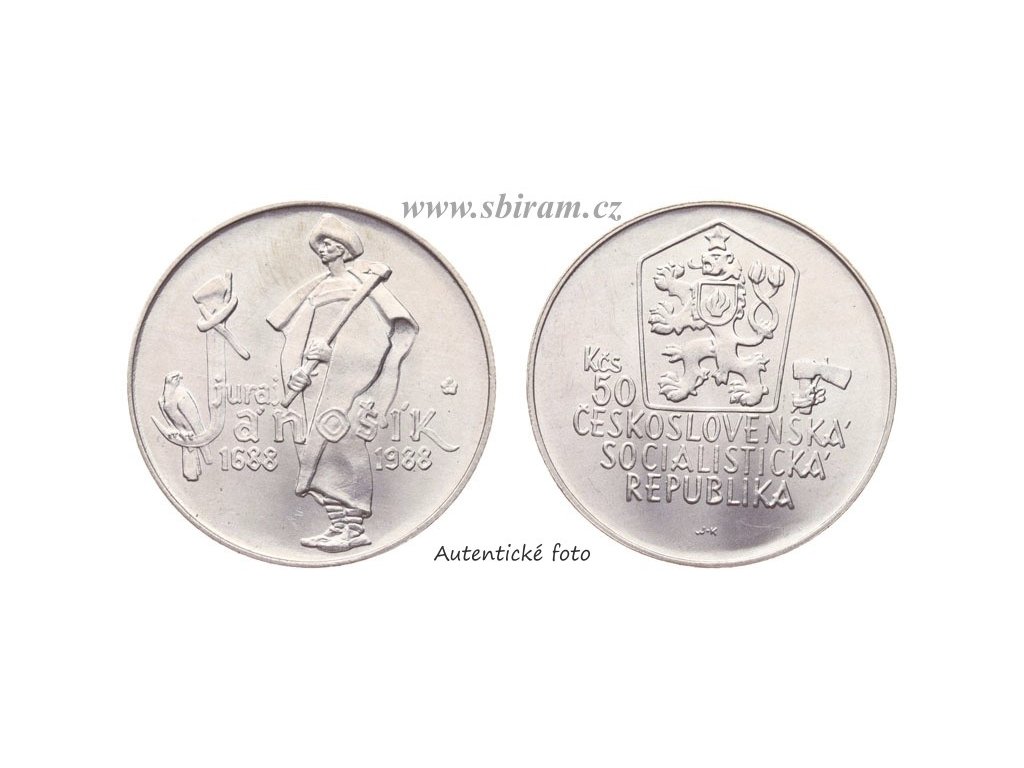 ČSSR, Ag (stříbrná) mince 50 Koruna 1988 - 300. výročí narození Juraje Jánošíka, ražební lesk, jemná patina, kapsle, stav 0/0...viz autentické foto