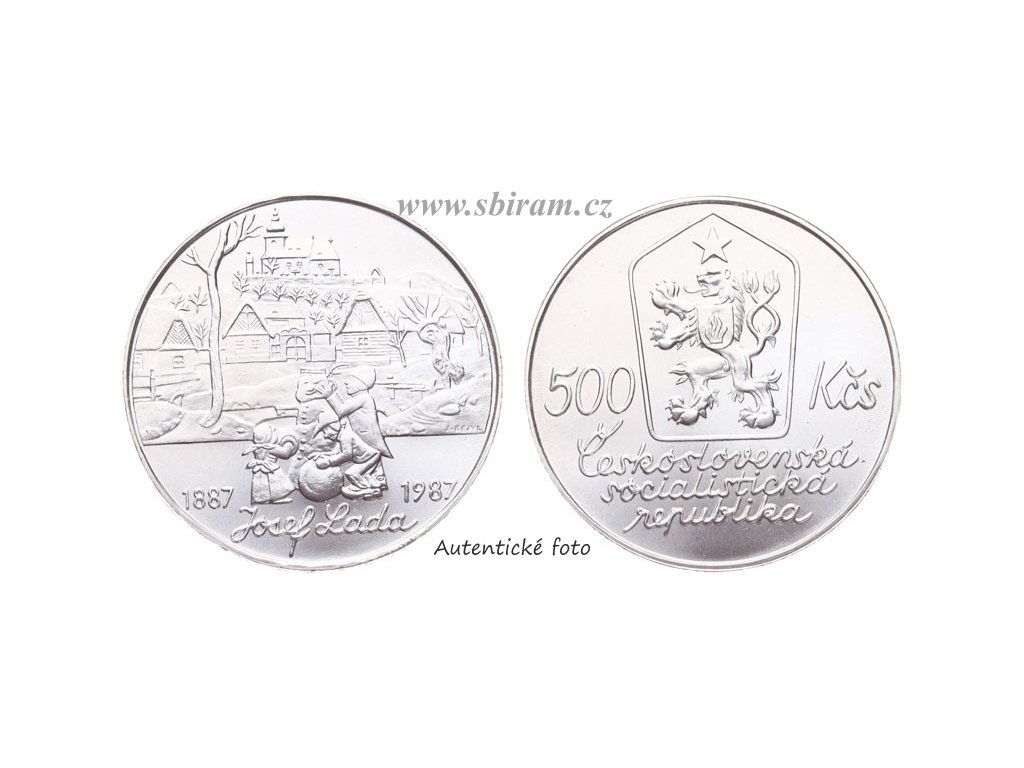 ČSSR, mince 500 Koruna 1987 - 100. výročí narození Josefa Lady, stav 0/0