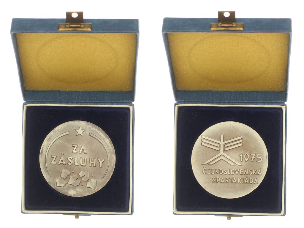 ČSSR, spartakiáda, AE medaile Za zásluhy, 1975, průměr 70 mm, etue, stav 1/1, ...viz autentické foto