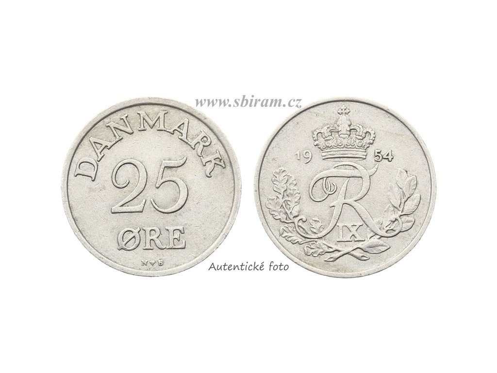 Dánsko, mince 25 Öre, 1954...viz autentické foto