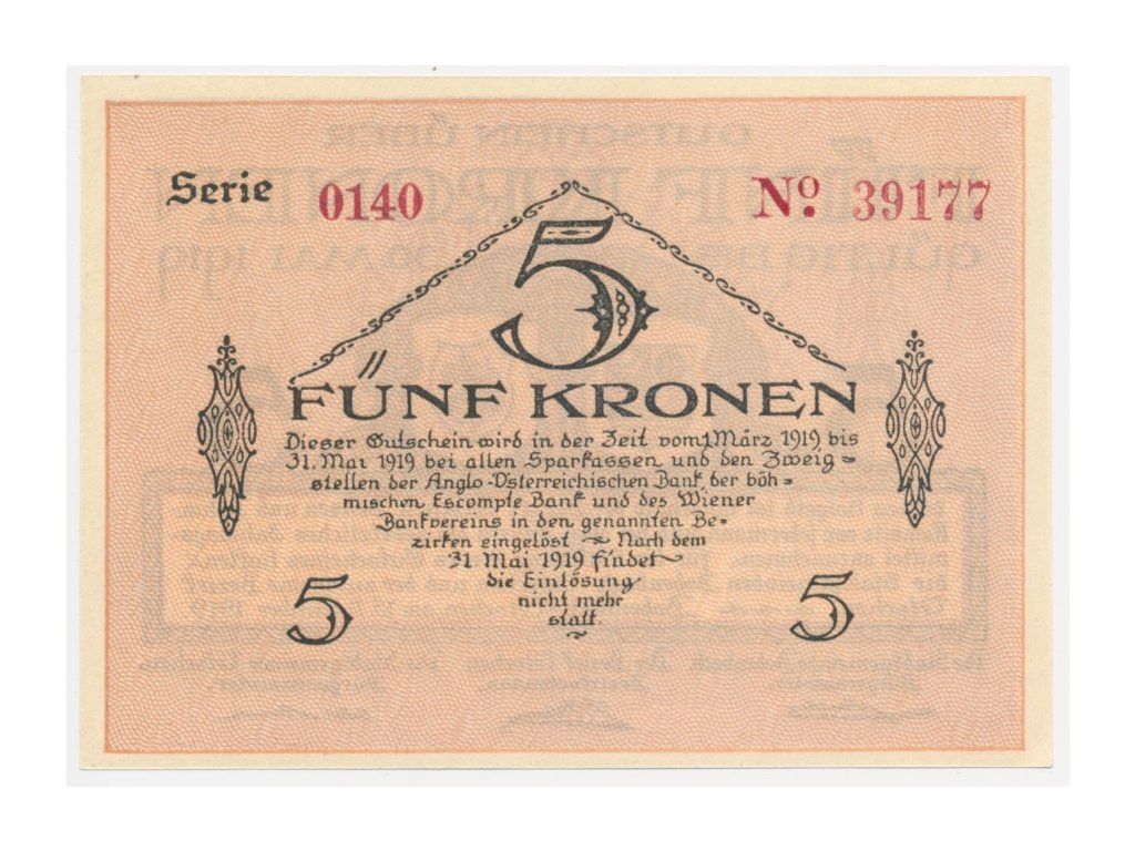 Děčín - Podmokly, 5 Korun, 1919, série 0140, stav UNC