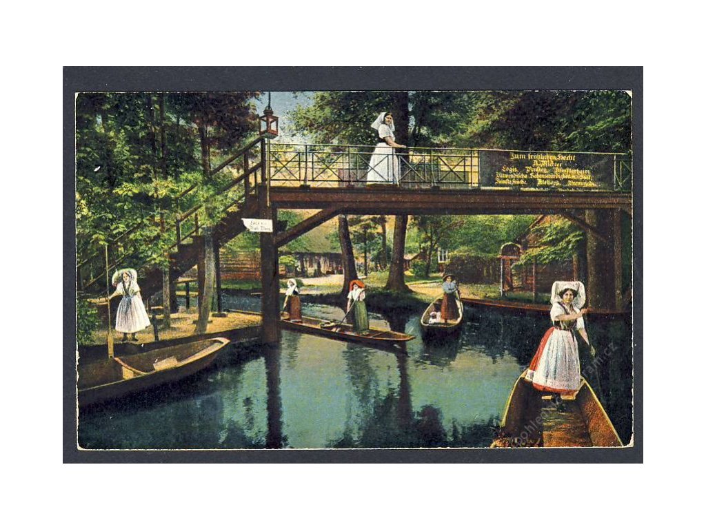 Deutschland, Spreewald, Brücke "Zum fröhlichen Hecht", Lehde, cca 1910