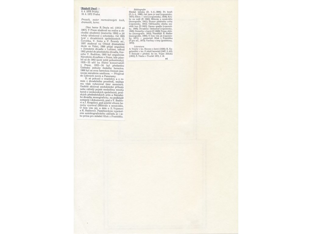 Deyl Rudolf st. (1876-1972), český herec, sběratelský list s vl. podpisem