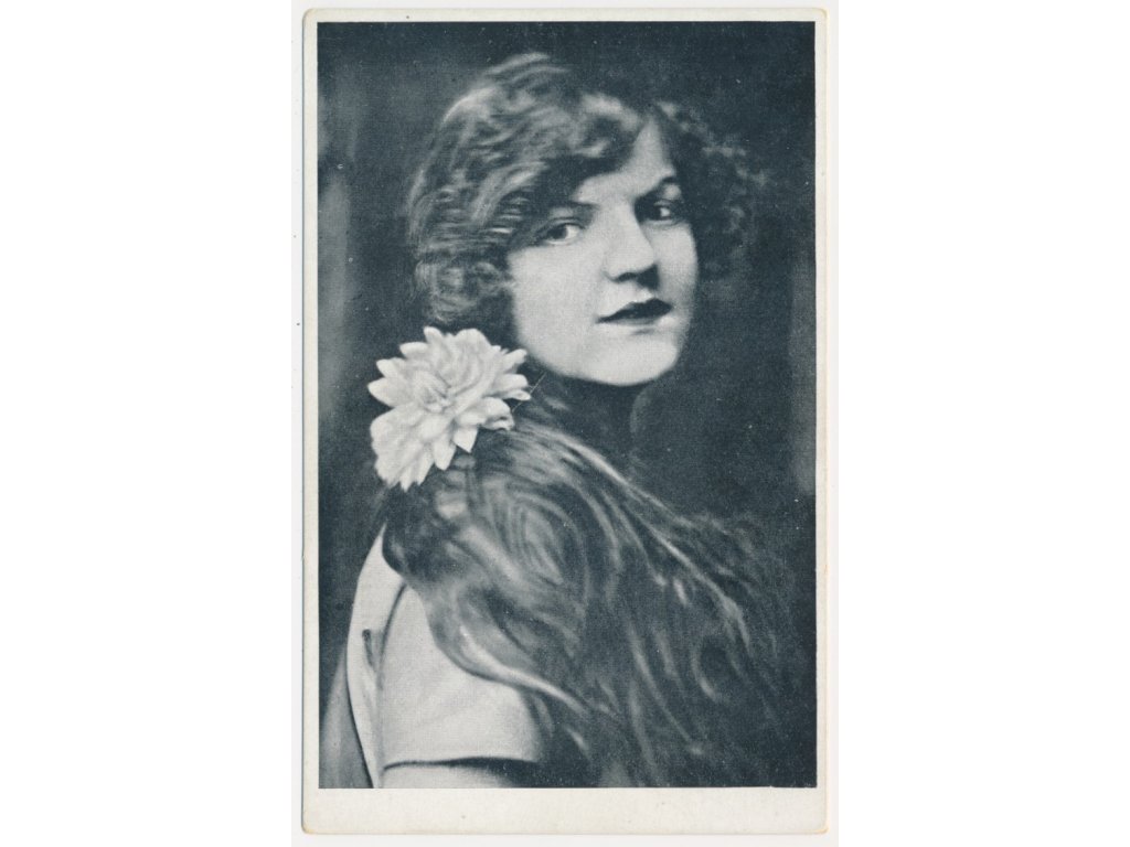 Dívka s dlouhými vlasy a velkou květinou, cca 1930