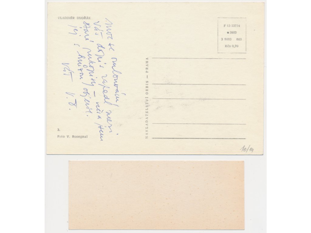 Dvořák Vladimír (1925-1999), český herec, konferenciér, moderátor, dramaturg a moderátor televizního pořadu Televarieté, portrétová pohlednice o rozměrech cca 10x15cm s vlastnoručním podpisem (datováno 1966) a sběratelská kartička s vlastnoručním podpisem...viz autentické foto