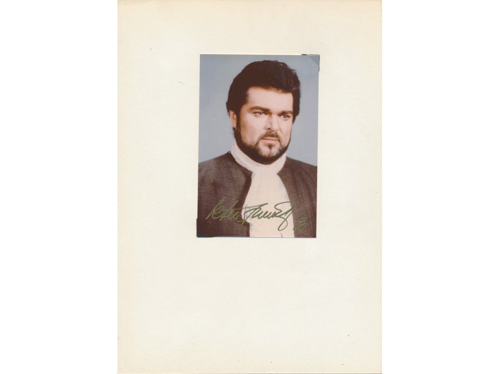 Dvorský Peter (1951), slovenský operní pěvec (tenor), sběratelský list o velikosti A4 s vlastnoručně podepsanou fotografií o rozměrech cca 9x14cm (datováno 1990)...viz autentické foto