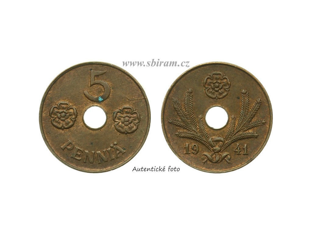 Finsko, mince 5 Penniä, 1941...viz autentické foto