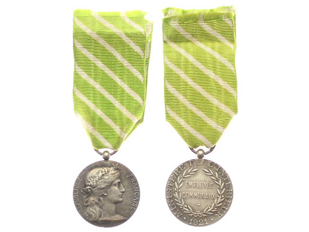Francie, AE Čestná medaili pro zaměstnance obcí z roku 1921, udělované Ministerstvem vnitra, stav 1/1/1