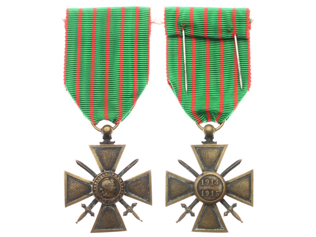 Francie, AE medaile Válečný kříž 1914/1915 s meči, bronz, stuha s hvězdou, stav 1/1/1