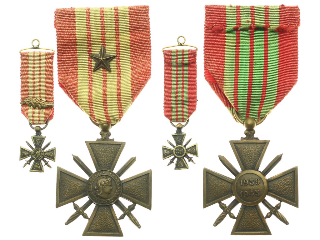 Francie, AE medaile Válečný kříž 1914/1918 s meči, bronz, stuha s hvězdou + miniatura, stav 1/1/1...viz autentické foto
