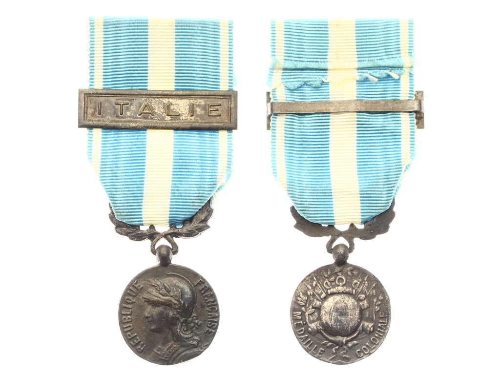 Francie, AE pamětní Koloniální medaile, stuha se štítkem Italie, stav 1/1/1