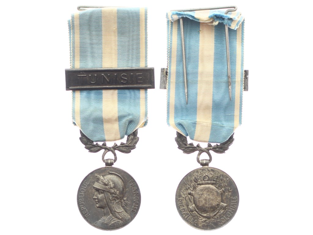 Francie, AE pamětní Koloniální medaile, stuha se štítkem Tunisie, stav 1/1/1