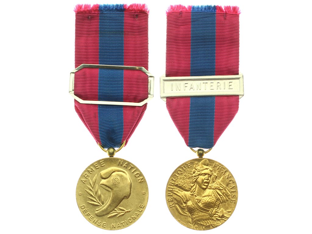 Francie, AE pamětní medaile Národní obrana - I. stupeň, stuha se štítkem Infanterie, stav 1/1/1