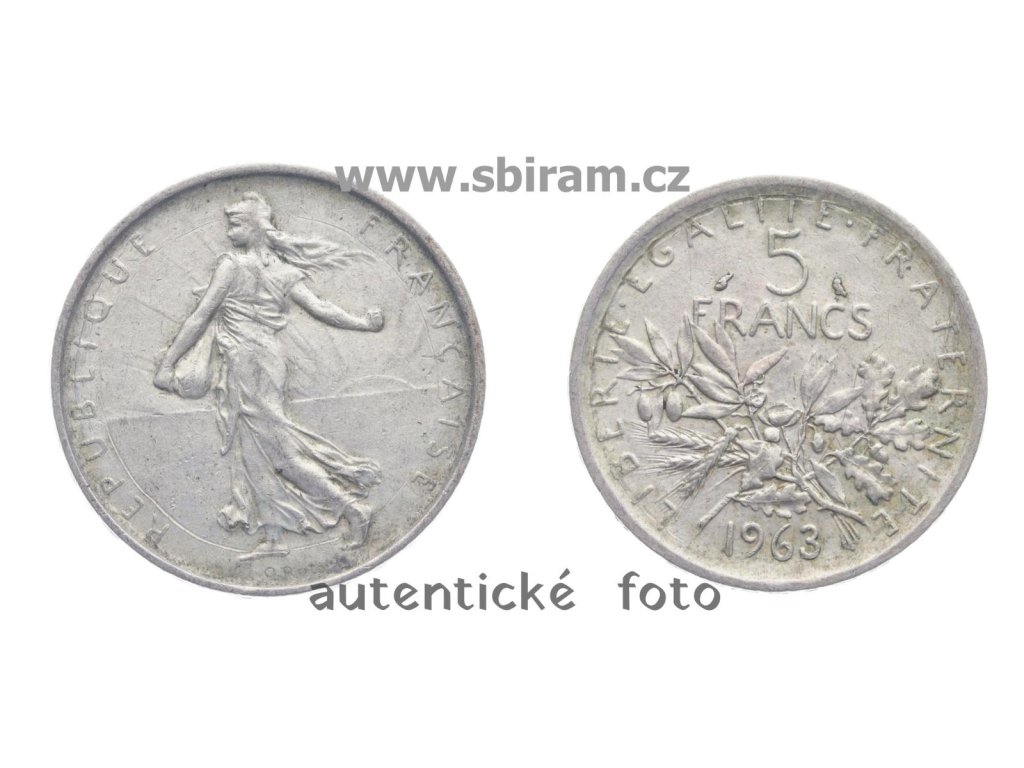 Francie, Ag (stříbrná) mince 5 Franků, Rozsévačka, 1963, stav 1/1...viz autentické foto