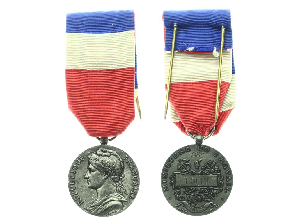 Francie, Čestná medaile práce, 1985, postříbřený bronz, stuha, stav 1/1/1...viz autentické foto