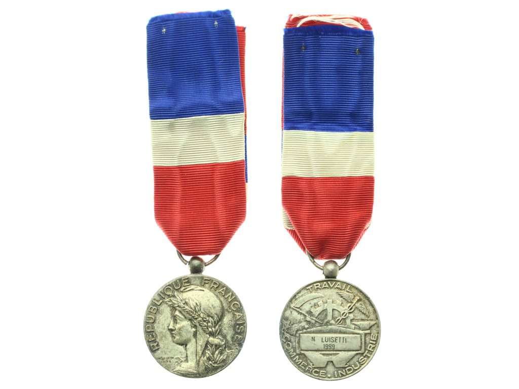 Francie, Čestná medaile práce, 1999, postříbřený bronz, stuha, stav 1/1/1...viz autentické foto
