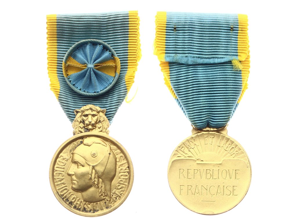 Francie, Čestná sportovní medaile, zlacený bronz, stuha s rozetou, pěkná sběratelská jakost 1/1/1...viz autentické foto