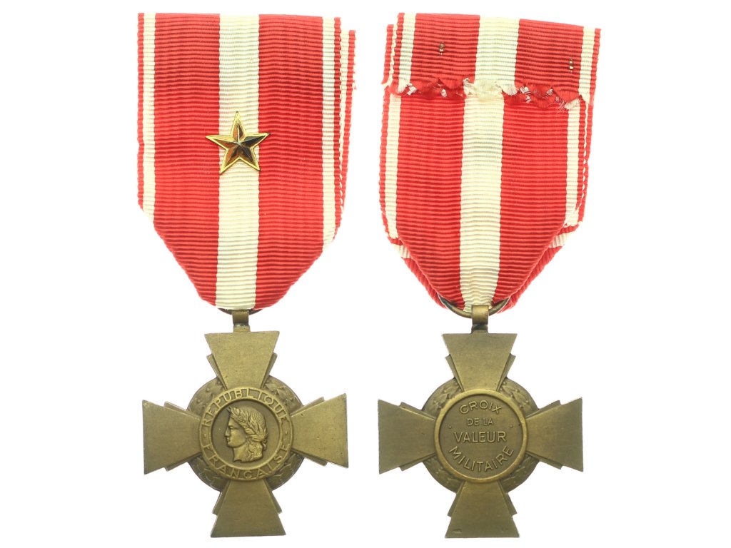 Francie, Kříž za vojenskou chrabrost (Croix de la Valeur Militaire), stuha s bronzovou hvezdičkou (divizní úroveň), stav 1/1/1...viz autentické foto