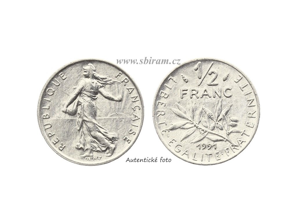 Francie, mince 1/2 Frank, 1991, stav 1/1...viz autentické foto