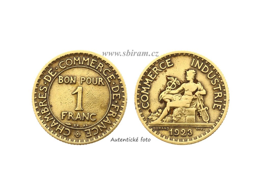 Francie, mince 1 Frank, 1923, stav -1/1-...viz autentické foto