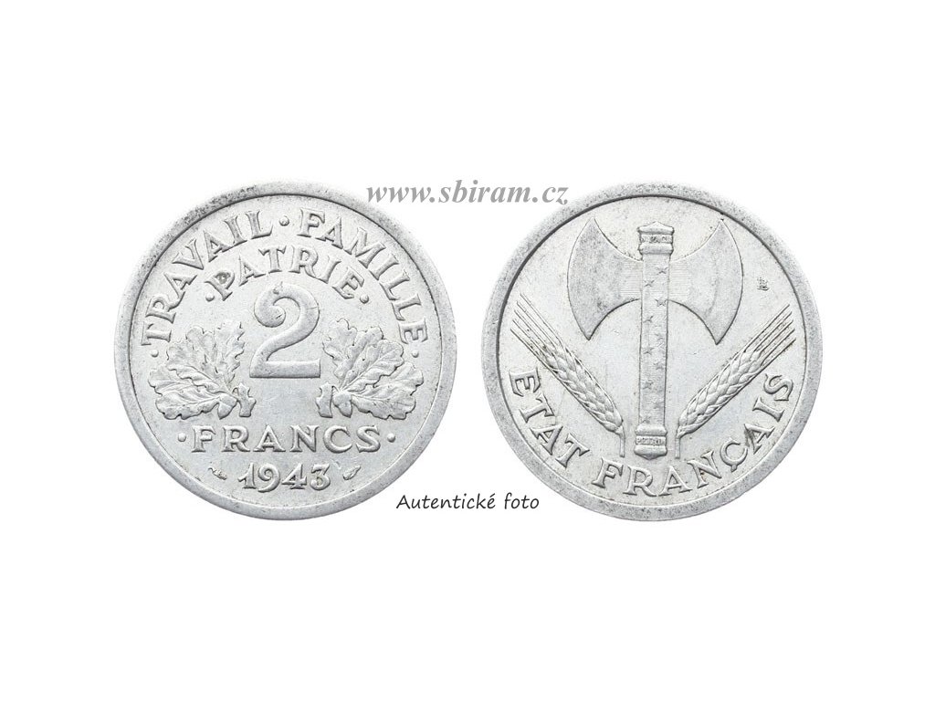 Francie, mince 2 Franky, 1943, stav 1/1...viz autentické foto