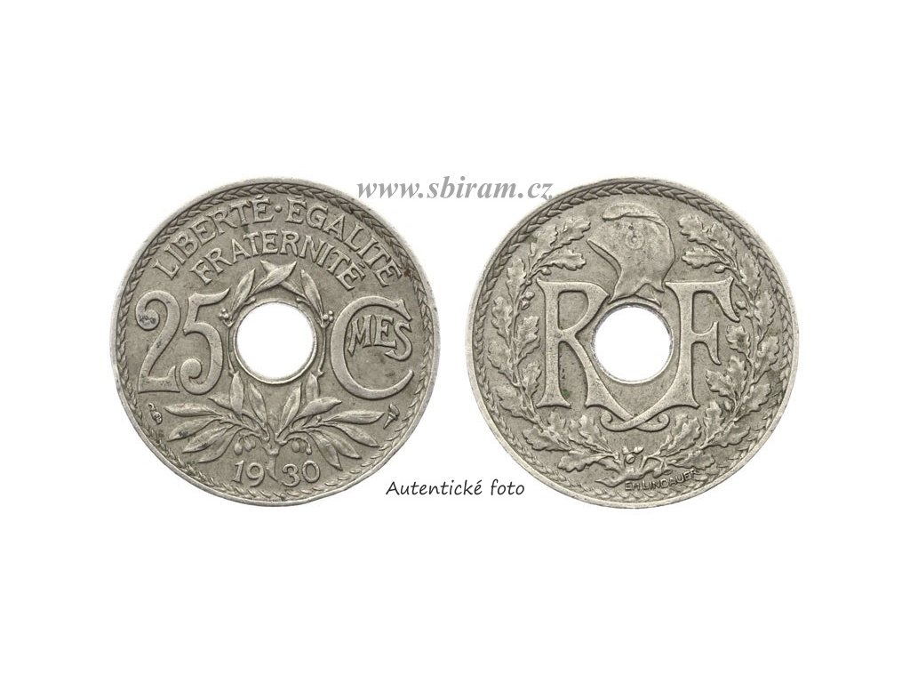 Francie, mince 25 Centimes, 1930, stav 1/1...viz autentické foto