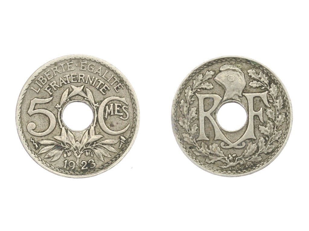 Francie, mince 5 Centimes, 1923, stav 1/1...viz autentické foto