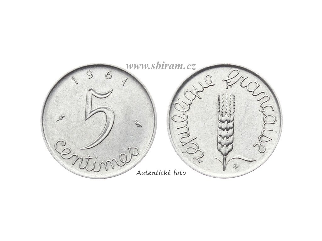 Francie, mince 5 Centimes, 1961, stav 1/1...viz autentické foto
