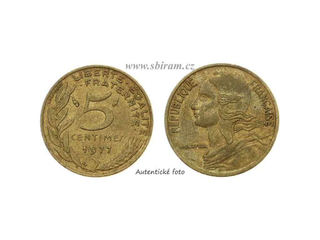 Francie, mince 5 Centimes, 1977, stav 1/1...viz autentické foto