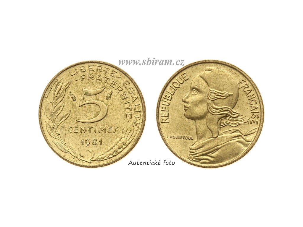 Francie, mince 5 Centimes, 1981, stav 1/1...viz autentické foto