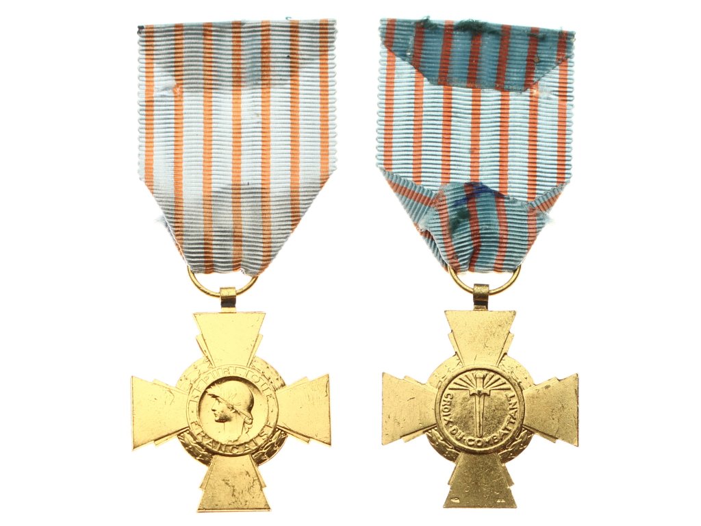Francie, Pamětní vojenská medaile Kříž bojovníka za II. sv. válku, zlatý stupeň, stuha, stav 1/1/1