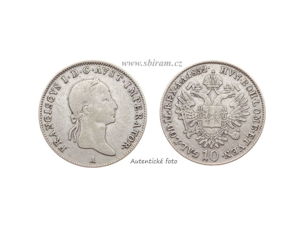 František II. (1768 - 1835), Ag (stříbrná) mince 10 Krejcar, 1832 A, stav -1/1