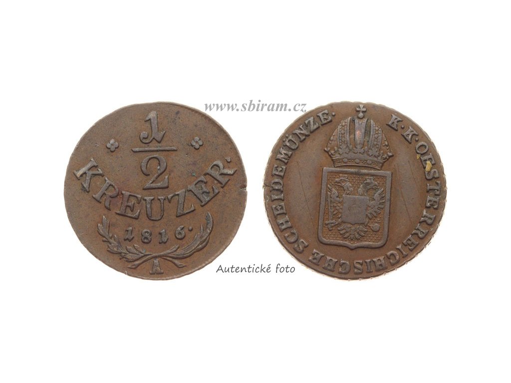 František II. (1768 - 1835), mince 1/2 Krejcar, 1816 A, Cu mince, váha 4,38 gramu, Ves.62, stav 1/1...viz autentické foto