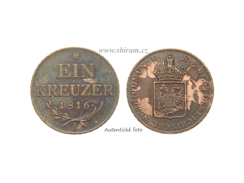 František II. (1768 - 1835), mince 1 Krejcar, 1816 A, Cu mince, váha 4,38 gramu, Ves.62, stav 1/1...viz autentické foto