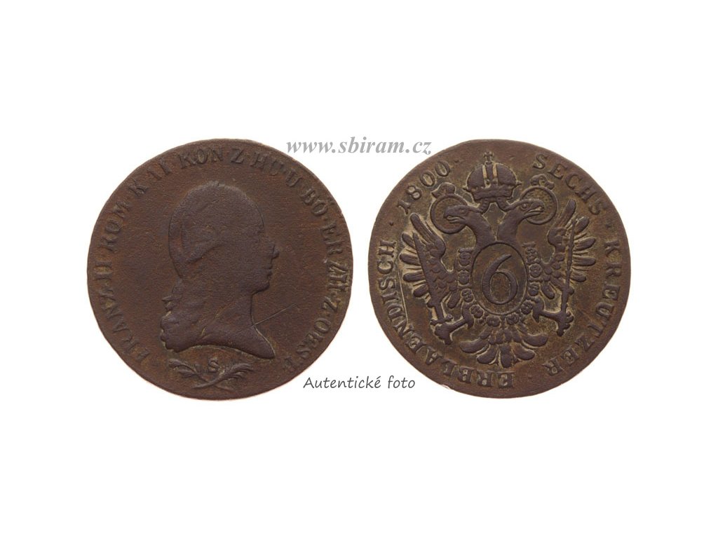 František II. (1792 - 1835), mince 6 Krejcar, 1800 S, slušná oběhová jakost