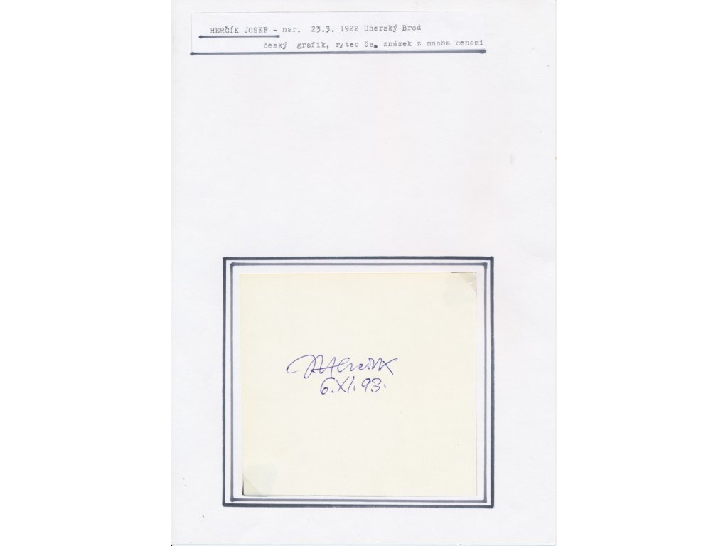 Herčík Josef (1922-1999), český rytec a grafik, sběrat. list s vl.podpisem