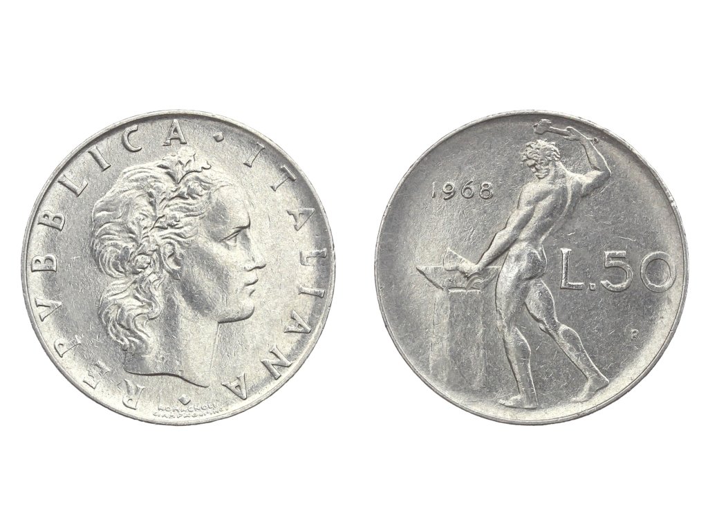Itálie, mince 50 Lira, 1968, stav 1/1...viz autentické foto