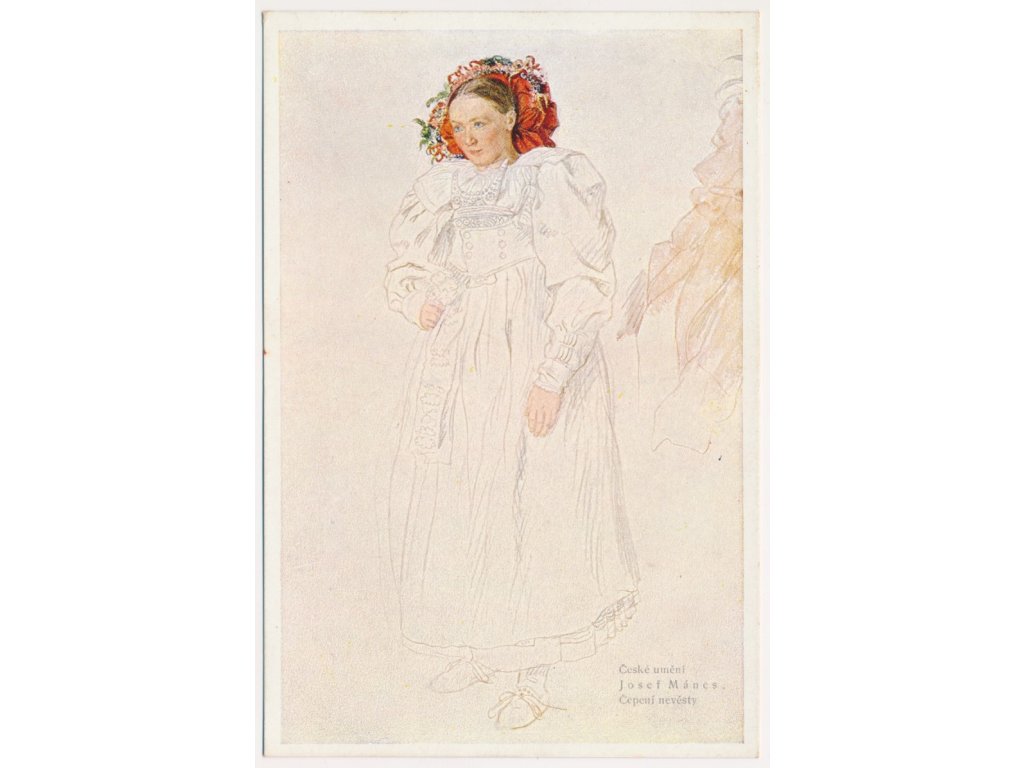Josef Mánes (1820-1871), Čepení nevěsty, Nakl. Henclova tiskárna, neprošlá poštou, rozměr cca 10x15cm, stav odpovídá použití, uložení a stáří...viz autentické foto
