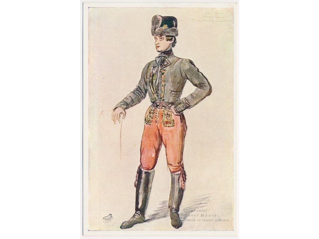 Josef Mánes (1820-1871), Hanák ve vysoké vydrovce, Nakl. Henclova tiskárna, neprošlá poštou, rozměr cca 10x15cm, stav odpovídá použití, uložení a stáří...viz autentické foto