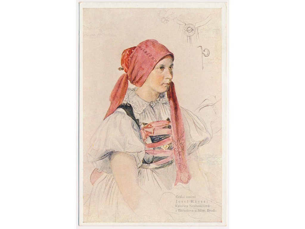 Josef Mánes (1820-1871), Kateřina Neubauerová z Bartošova u Něm. Brodu, Nakl. Henclova tiskárna, neprošlá poštou, rozměr cca 10x15cm, stav odpovídá použití, uložení a stáří...viz autentické foto