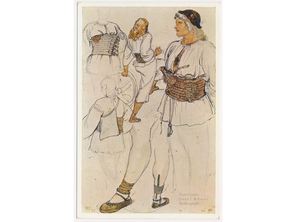 Josef Mánes (1820-1871), Studie Goralů, Nakl. Henclova tiskárna, neprošlá poštou, rozměr cca 10x15cm, stav odpovídá použití, uložení a stáří...viz autentické foto