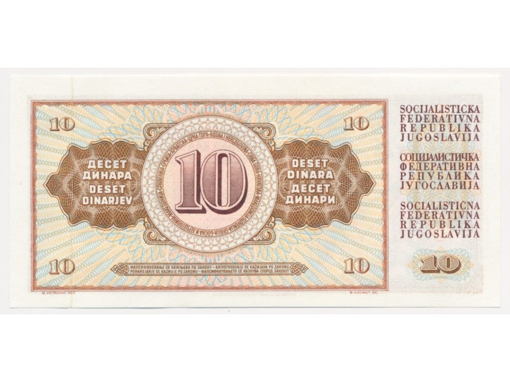 Jugoslávie, 10 Dinara, 1968, stav UNC