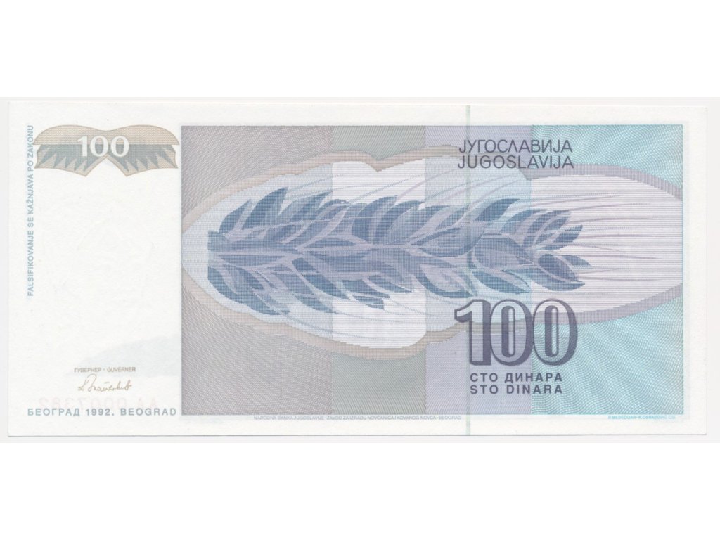 Jugoslávie, 100 Dinara, 1992, stav UNC