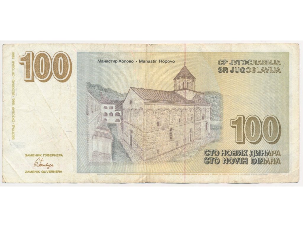 Jugoslávie, 100 Dinara, 1996, oběhový stav