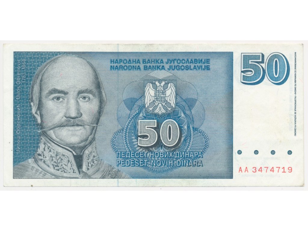 Jugoslávie, 50 Dinara, 1996, oběhový stav...viz autentické foto