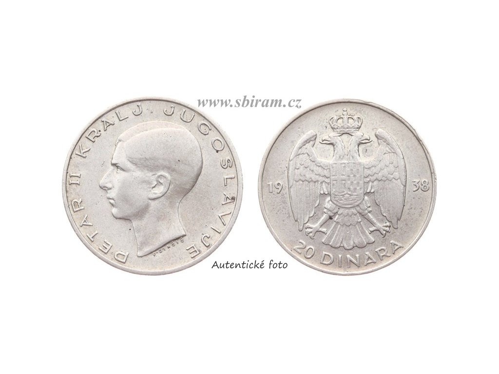 Jugoslávie, Ag (stříbrná) mince 20 Dinara, 1938...viz autentické foto