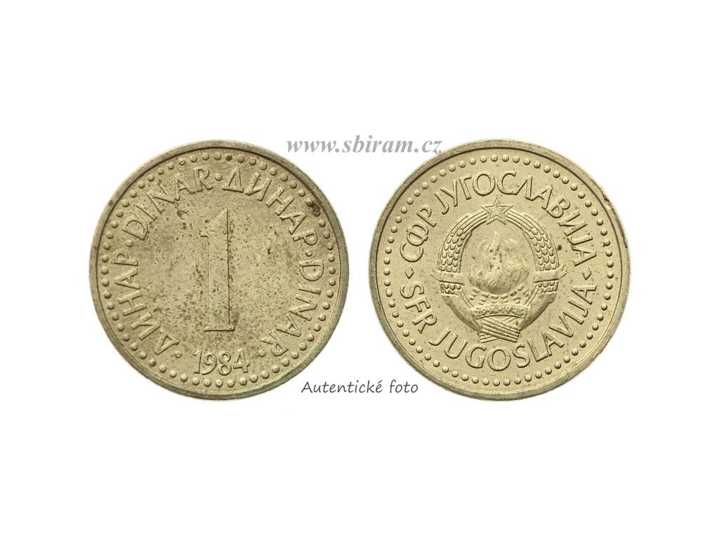 Jugoslávie, mince 1 Dinár, 1984...viz autentické foto