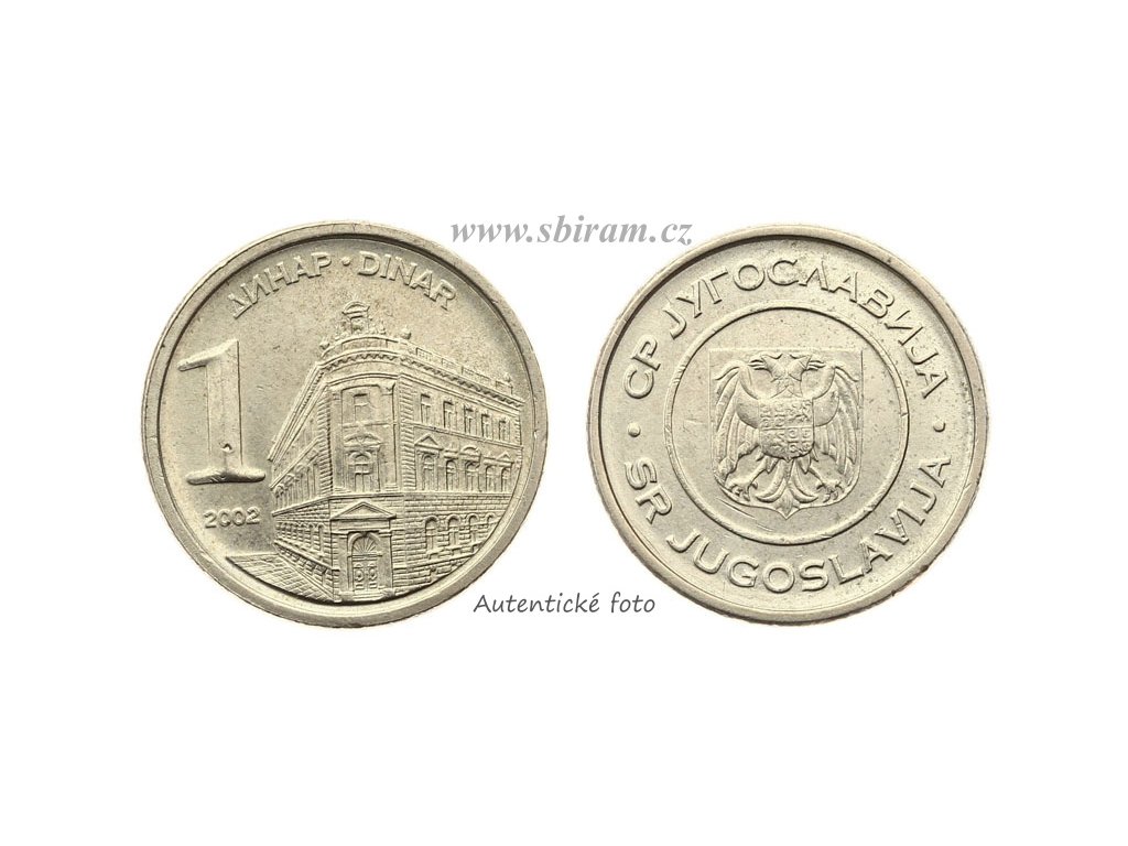 Jugoslávie, mince 1 Dinár, 2002...viz autentické foto