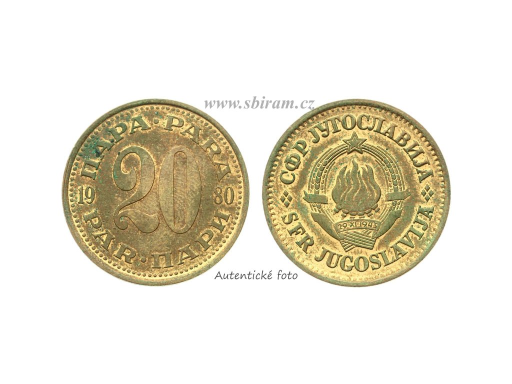 Jugoslávie, mince 20 Para, 1980...viz autentické foto