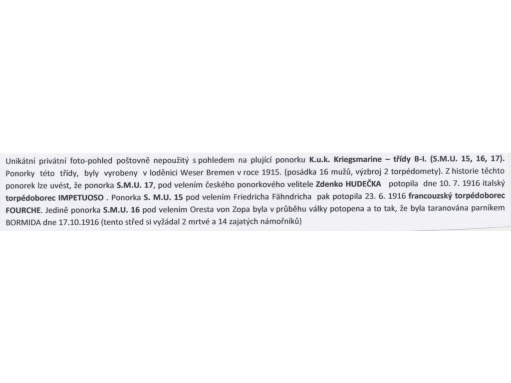 K.U.K. Kriegsmarine, pohled na plující ponorku, cca 1916